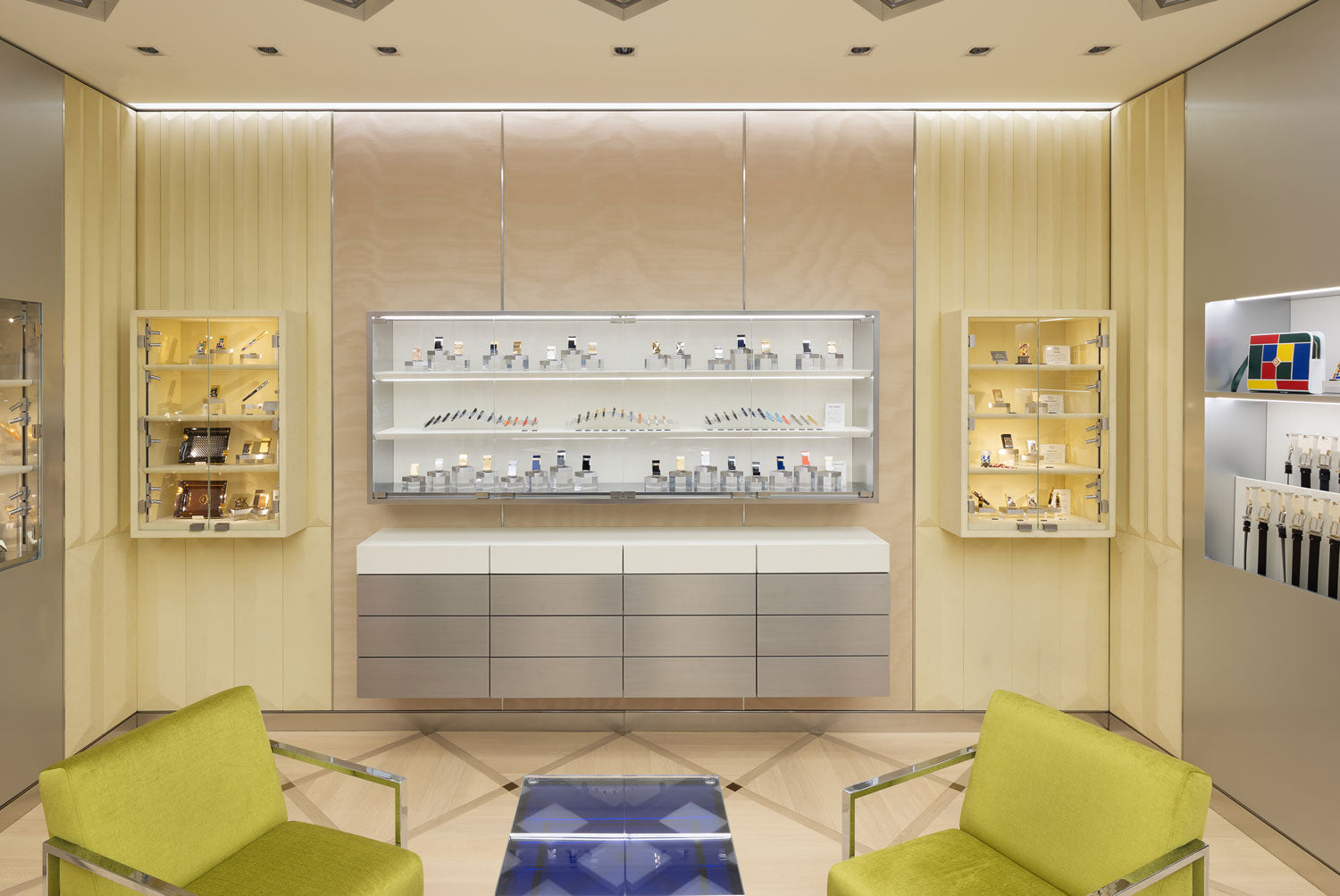 Following Paris (rue Saint-Honoré), Hong Kong, and Harvey Nichols at Pacific Place, this new Tokyo destination reimagines the Maison’s vision of excellence. Designed by the renowned studio Sybarite, the architectural concept draws directly from the House’s very first iconic lighter, born in the 1940s — a pioneering object, symbolising the perfect balance between function and finesse, now reinterpreted as a retail space.The interior design pays tribute to the Maison’s signature codes: noble materials, graphic lines, iconic guilloché patterns, lacquer accents, and a palette inspired by flame. From electric blue to deep midnight, soft peach to glowing yellow, the tones create contrasting atmospheres — a nod to the House’s signature twin flame.