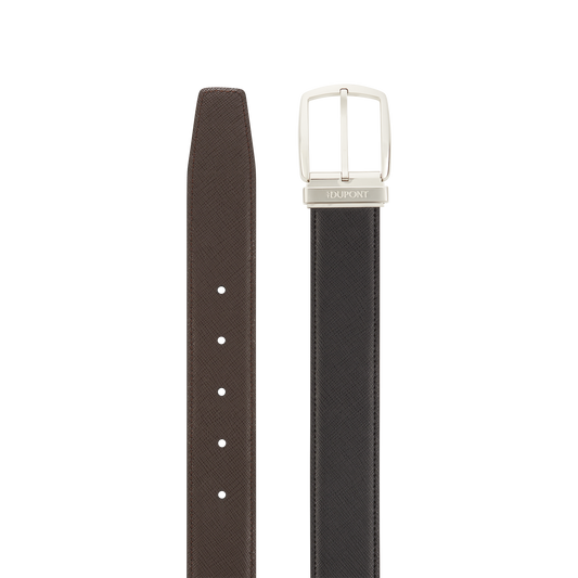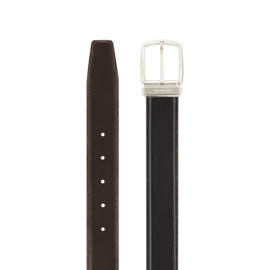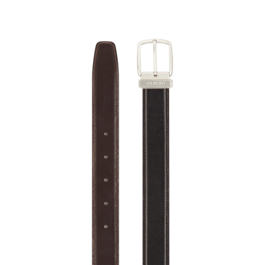 The luxury Line D belt is a classic and sophisticated accessory, which pairs well with casual trousers or a classic wool suit and can be colour-coordinated to your shoes and outfit. Its subdued design and finish will bring an additional discreet and elegant touch to your look. The straps have been produced in a variety of shades and patinas and are available in two widths. Our signature S.T. Dupont logo is engraved on the metal bar. The reversible Business model plays with contrasts, combining all the techniques that have made the brand’s reputation. Producing the ultimate accessory for every refined gentleman requires an intricate lacquering and chiselling process, precious metals and patinas. We have pushed attention to detail to the extreme, as excellence demands. The branded two-tone loops, which can match the colour of the strap to the finish of the closure, are a case in point.