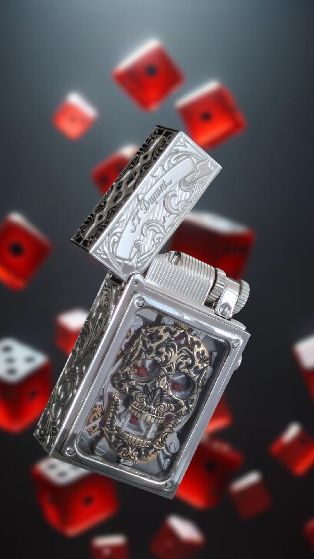 Today, the innovative spirit of the Maison reaches new heights with the Lucky Skull Pocket Complication Lighter. Drawing inspiration from the classic 421 dice game, artisans have meticulously crafted this quintessential luxury toy to ensure that each component balances performance, aesthetics, and pleasure. Craftsmen have carefully designed every detail to offer a unique experience, blending traditional gaming elements with technological innovation. The Lucky Skull Pocket Complication Lighter is a centrepiece for collectors and luxury enthusiasts alike.